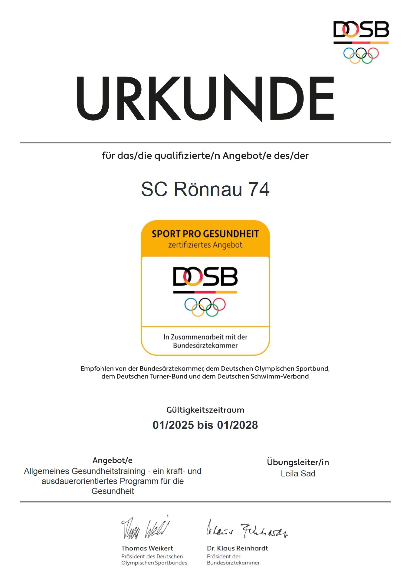 Empfänger: SC Rönnau 74 e.V., Sparkasse Südholstein