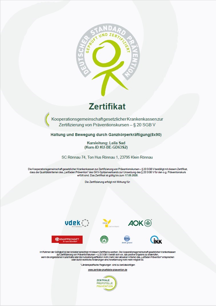 *Um den Zuschuss der Krankenkasse zu erhalten, müssen mindestens 80% der Einheiten besucht werden.